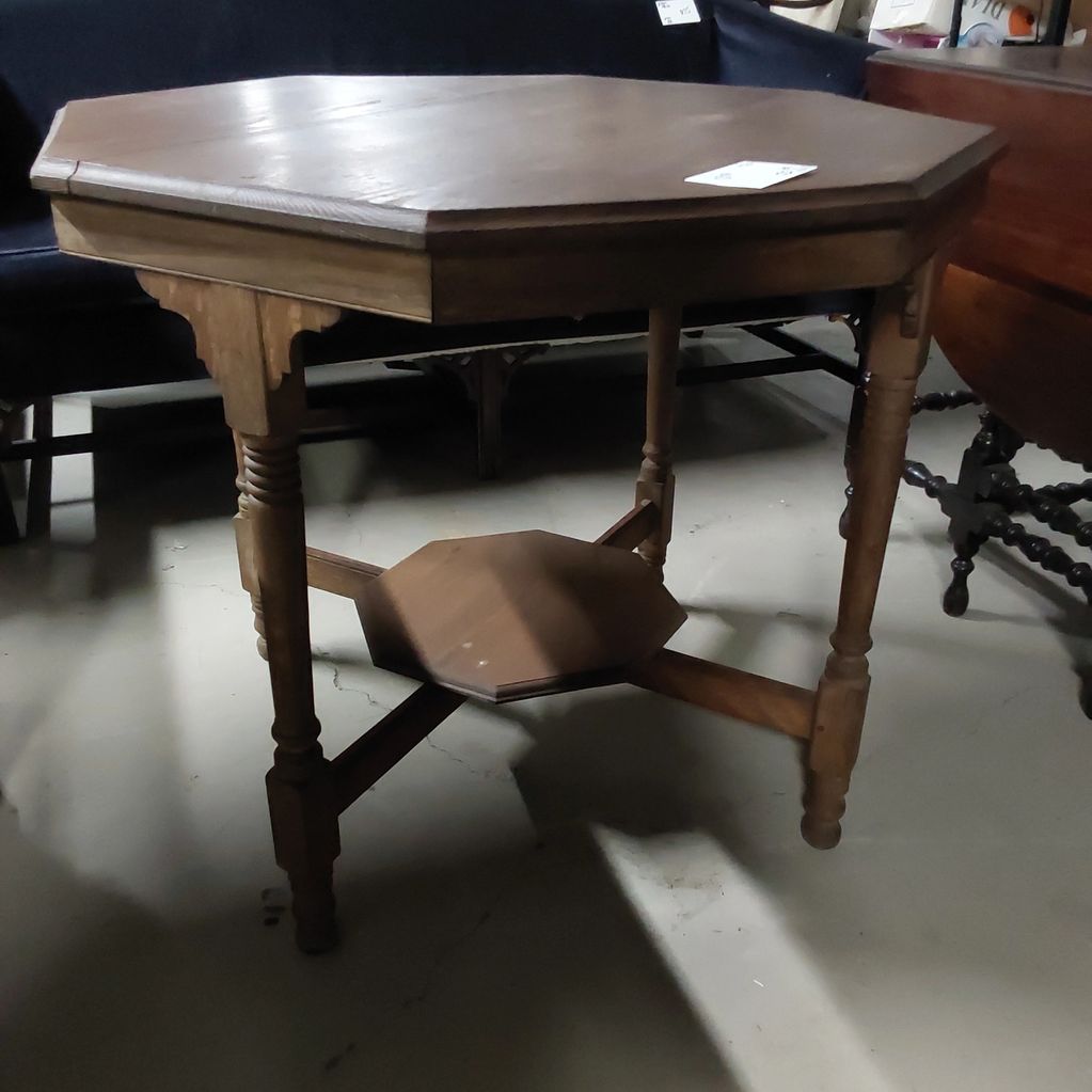 Stock #JD61 Walnut Octagon Bay window Table with Undershelf $40.00